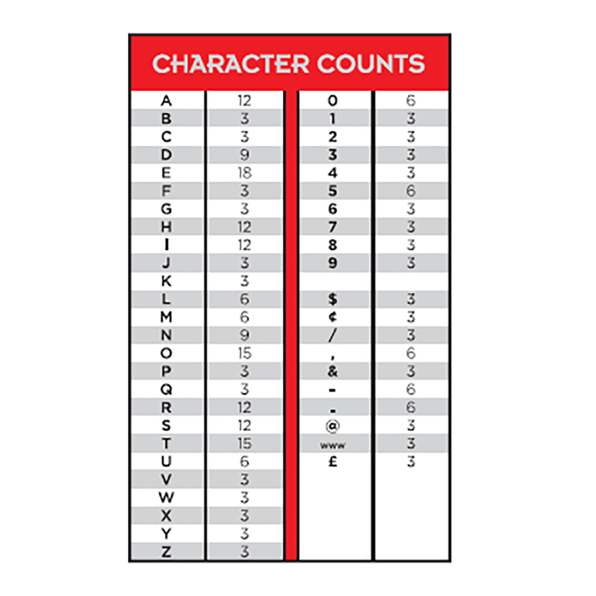 • 3/4" Molded letters and numbers - lightweight and easy to change